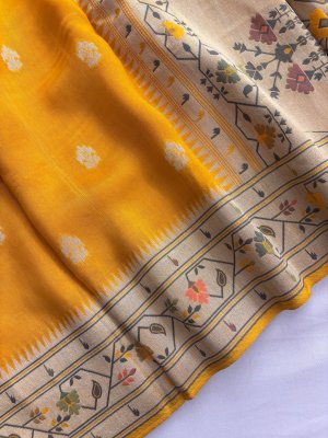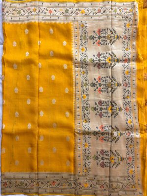 Black Chanderi Cotton Saree with Knot Work Border & Kantha Work Pallu