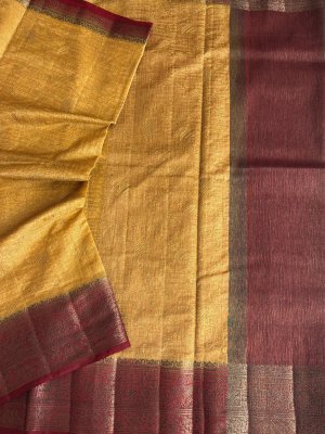 Wine Banarasi Jute Linen Silk Saree with Embroidery