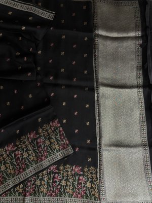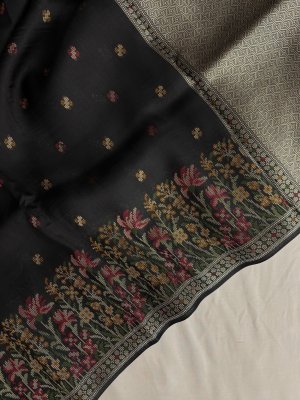 Yellow Organza Saree with Embroidery & Scalloping Border