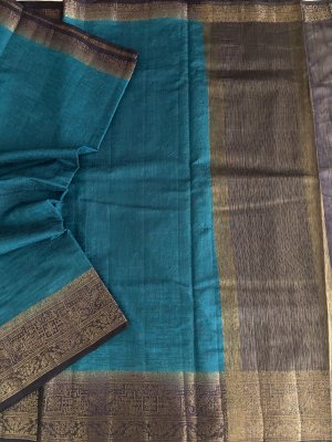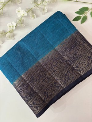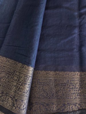 Dusty Powder Blue Jute Linen Sarees with Embroidery