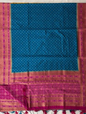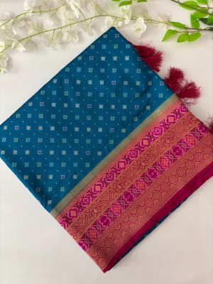 Turquoise Blue Tissue Crush Organza Saree with Aari Work