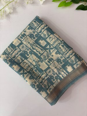 Dark Beige Scalping Border Digital Chanderi Cotton Saree with Mirror Work