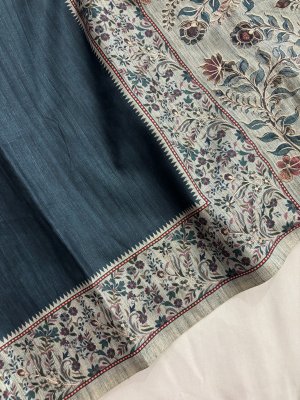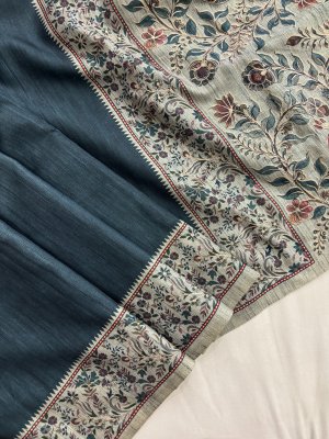 Blue Tussar Silk Saree with Aari Work