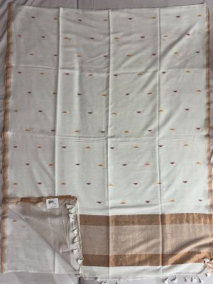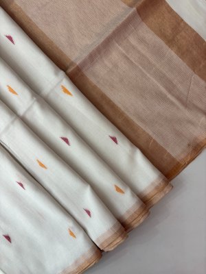 Cream Warli Print Tussar Silk Saree with Neem Zari Work