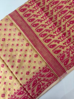 Yellow Organza Saree with Embroidery & Scalloping Border