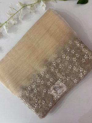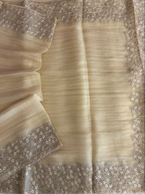 Powder Blue Tissue Organza Sarees with Scalping Border