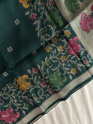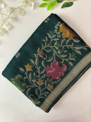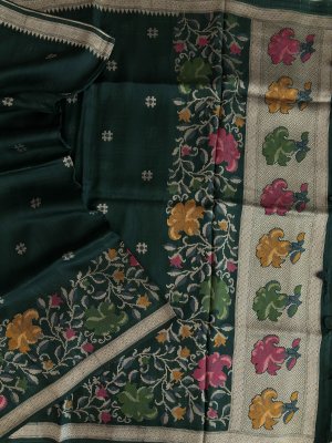 Green Banarasi Semi Tussar Silk Saree