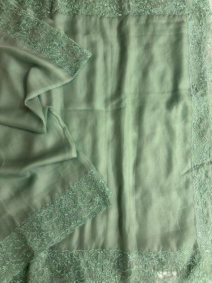 Yellow Organza Saree with Embroidery & Scalloping Border