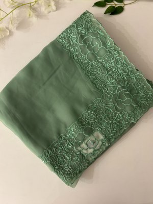 Light Blue Crush Tissue Organza Saree with Embroidery