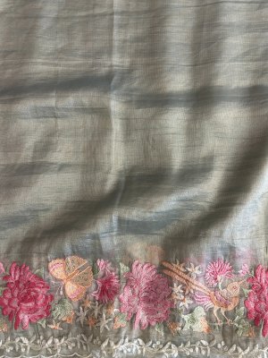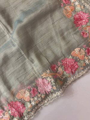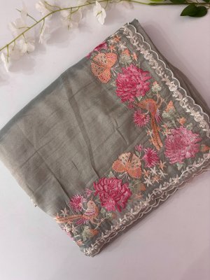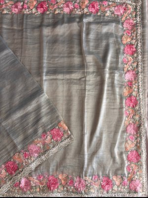 Grey Luxe Fancy Tissue Crepe Saree with Embroidery