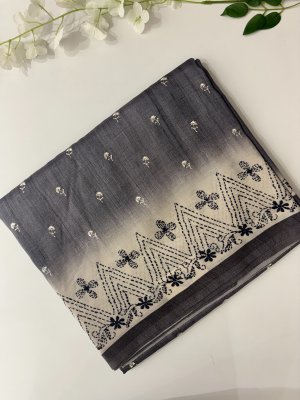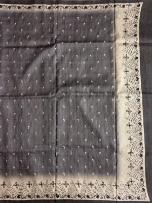 Dusty Onion Pink Linen Tissue Saree with Aari Work