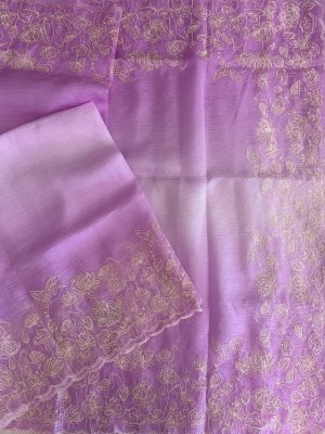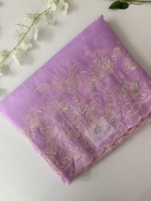 Lavender Shaded Crush Tissue Georgette Saree with Embroidery
