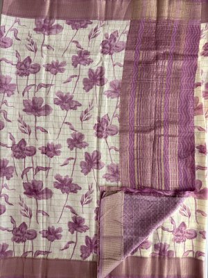 Wine Tussar Silk Sarees with Printed Border, Pallu & Blouse