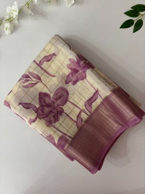 Yellow Printed Chapa Tussar Silk Saree
