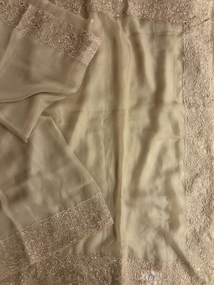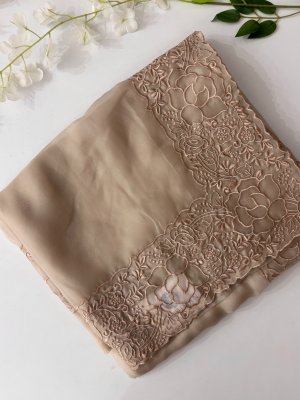 Dark Beige Banarasi Jute Linen Silk Saree with Embroidery