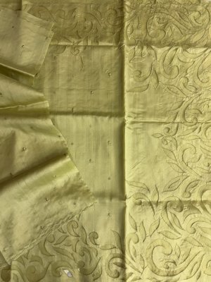 Navy Blue Printed Tussar Silk Saree with Mirror Work
