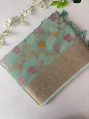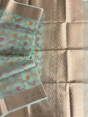 Mint Banarasi Kora Silk Saree