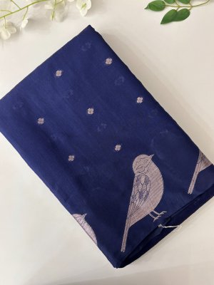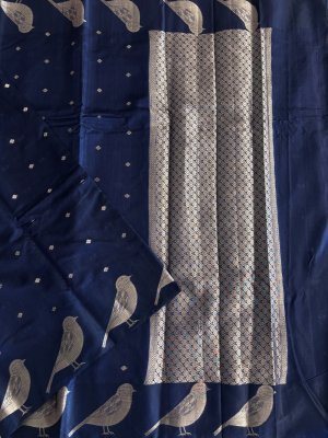 Navy Blue Banarasi Cotton Silk Saree