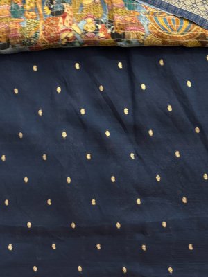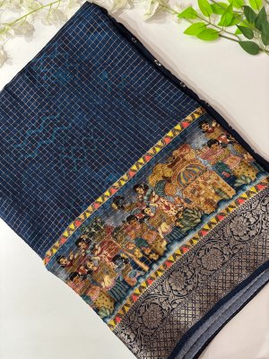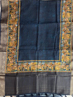 Turquoise Blue Tissue Crush Organza Saree with Aari Work