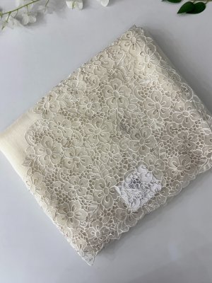 Light Yellow Supernet Saree with Aari Work