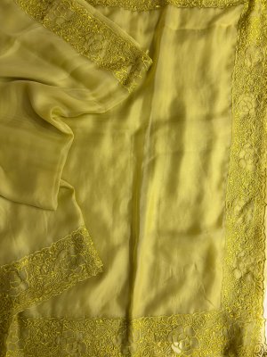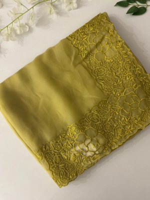Dusty Green Scalping Border Digital Chanderi Cotton Saree with Mirror Work