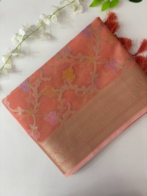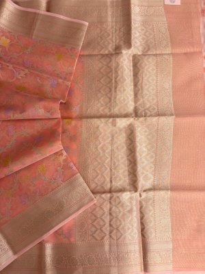 Mauve Pink - White Floral Tissue Organza Saree with Handwork