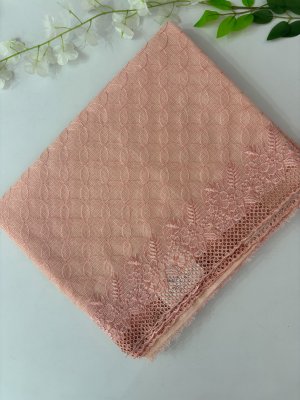 Turquoise Blue Tissue Crush Organza Saree with Aari Work