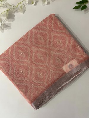 Tussar Silk Sarees with Printed Border, Pallu & Blouse