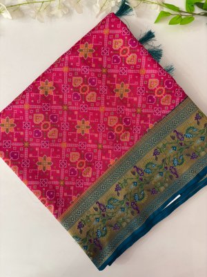 Light Peach Organza Saree with Embroidery & Mirror Work