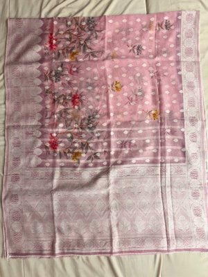 Pink Scalping Border Digital Chanderi Cotton Saree with Mirror Work