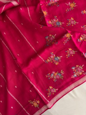 Wine Banarasi Jute Linen Silk Saree