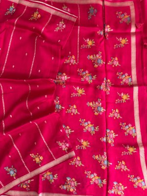 Red and Orange Banarasi Jute Linen Silk Saree