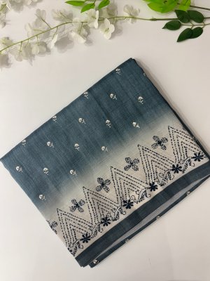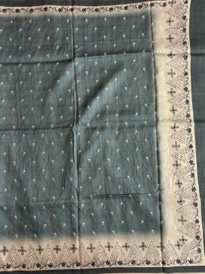Cream Warli Print Tussar Silk Saree with Neem Zari Work