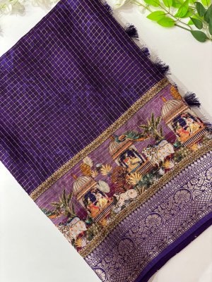 Lavender Tissue Kota Cotton Saree with Mirror Work