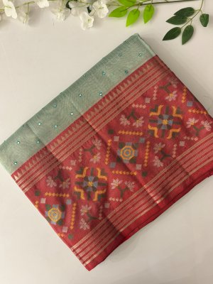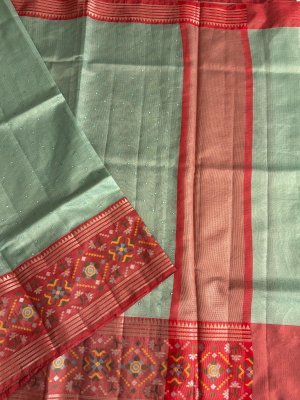 Cream Warli Print Tussar Silk Saree with Neem Zari Work