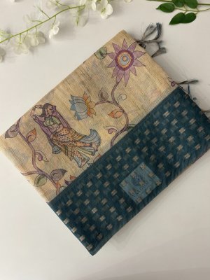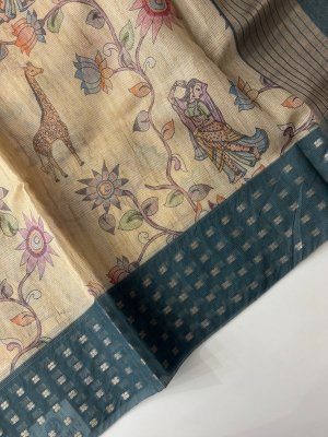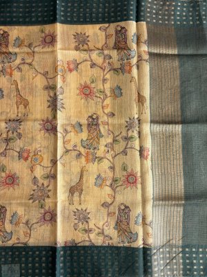 Black Border Tussar Silk Saree with Border Embroidery