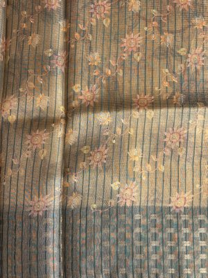 Light Teal Tissue Kota Cotton Saree with Mirror Work