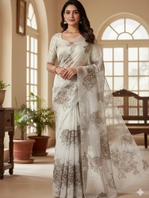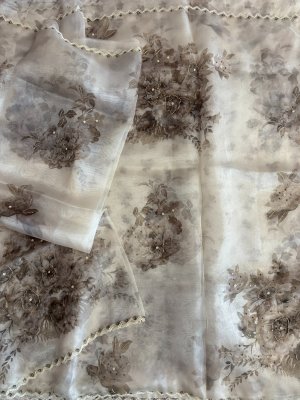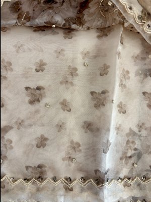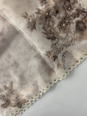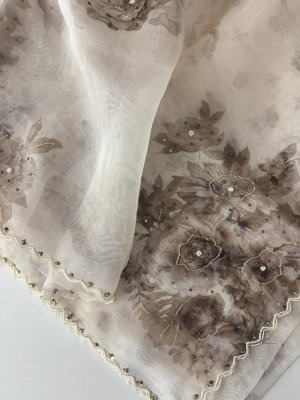 Light Peach Crush Tissue Organza Saree with Embroidery