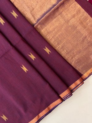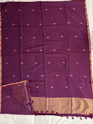 Grey and Cream Linen Tissue Saree with Kantha Work