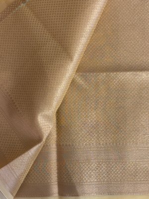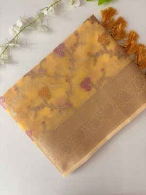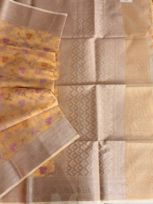 Beige Banarasi Jute Linen Silk Saree with Embroidery