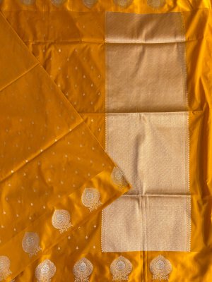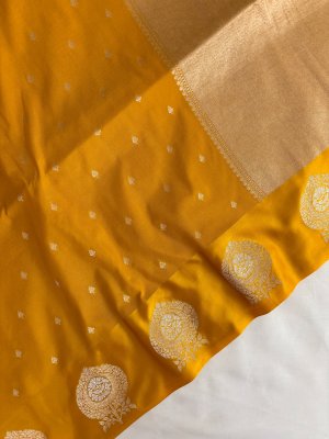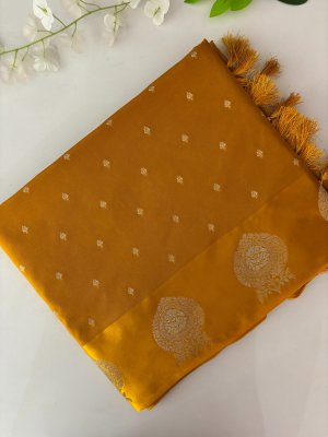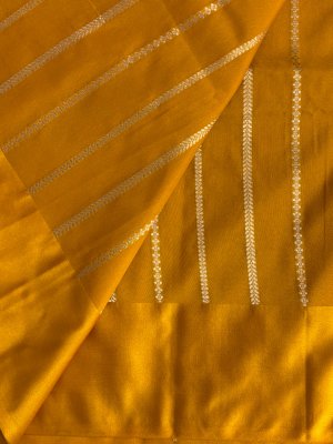 Dark Beige Banarasi Jute Linen Silk Saree with Embroidery
